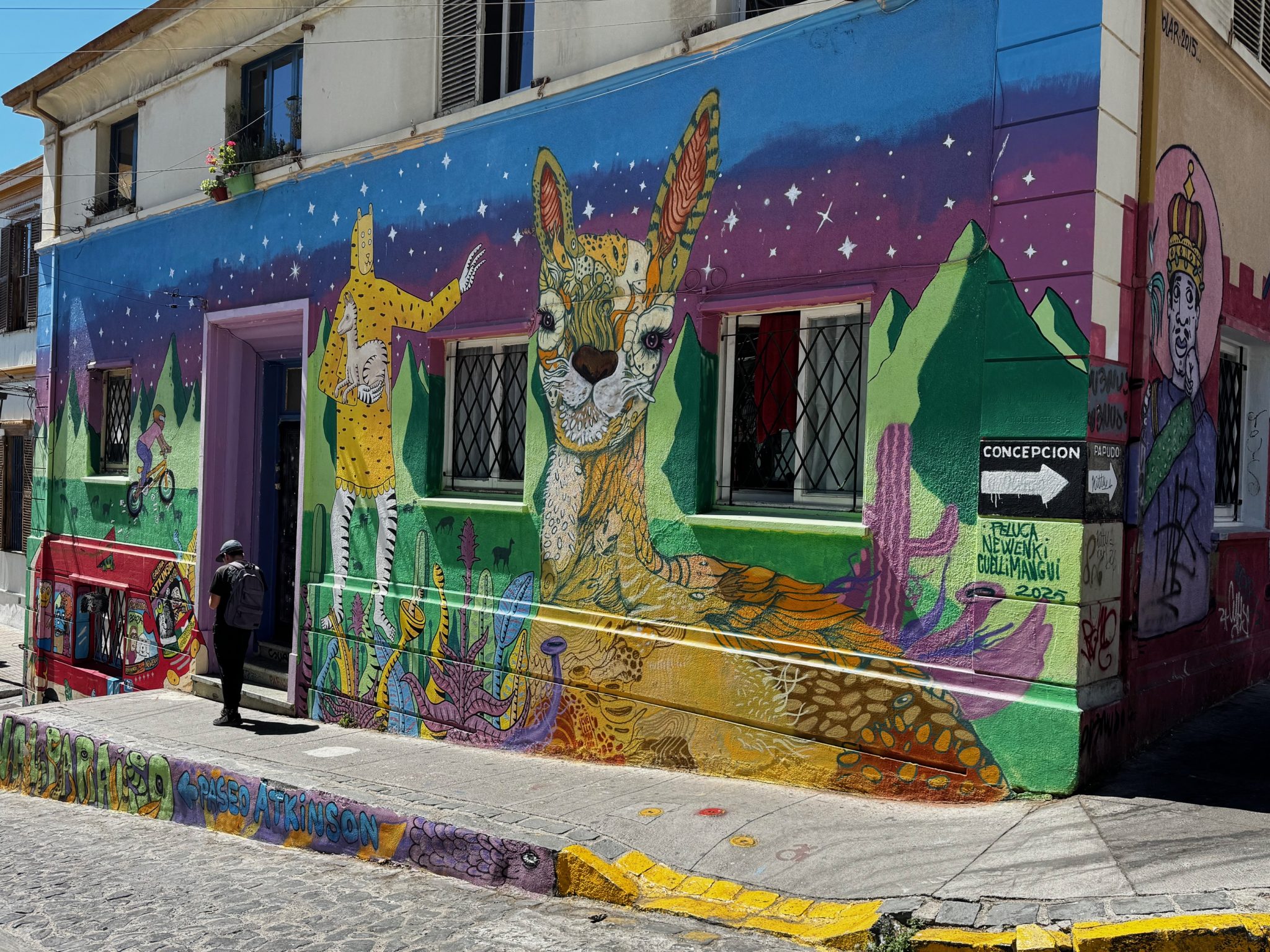 I really wanted to visit Valparaiso while I was in Chile because my great-grandfather, a Scottish sea captain, was here in 1892 and 1893. It’s not surprising that he was here because it used to be the main port of Chile in those days, and a major stopping-off point for ships travelling between the Atlantic and Pacific oceans via the Strait of Magellan, before the Panama Canal opened. It’s rather different now; it’s a UNESCO World Heritage Site and very boho. But I like to think that he might have walked along the same little streets as me, with their higgledy-piggledy coloured houses – although minus the wacky-baccy inspired murals that cover so many of the old buildings now.